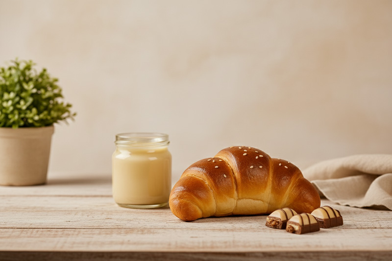 Αφράτο κρουασάν με γέμιση Bueno, ιδανικό για όσους αγαπούν σοκολάτα και φουντούκι.