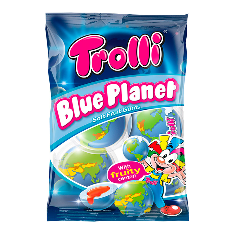 Ζελεδάκια Trolli Blue Planet με γέμιση φρούτων και μοναδική εμφάνιση πλανήτη.