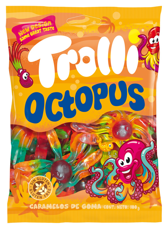 Ζελεδάκια Trolli Octopus με γεύση φρούτων και εντυπωσιακά χρώματα.
